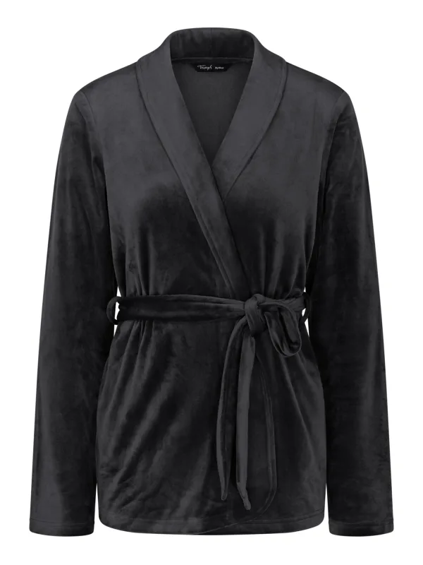 TRIUMPH Badjas kort ‘ Sensual Velour Robe Top ‘ zwart
