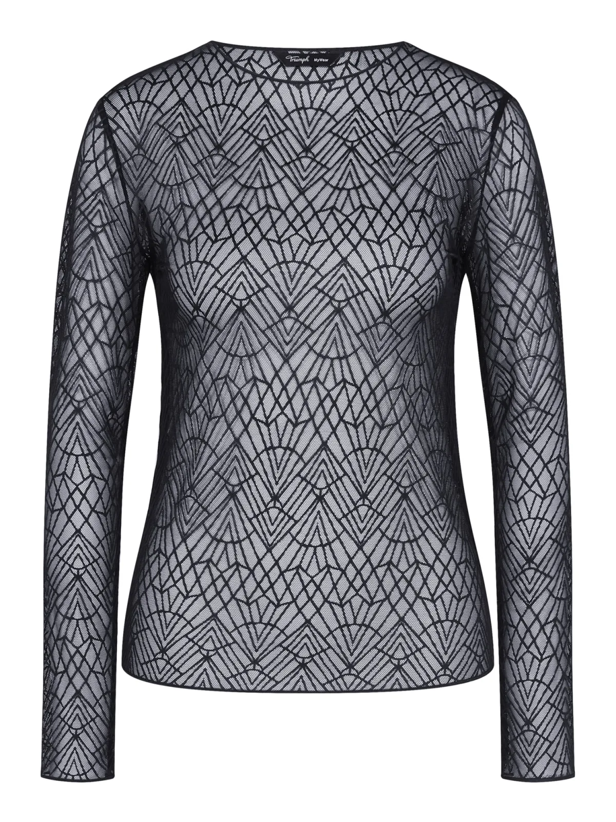Halstype: Ronde hals; Details: Kant; Extra's: Licht transparant; Pasvorm: Normale pasvorm; Armlengte: Lange mouw; Lengte: Normale lengte
