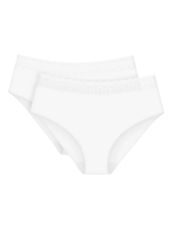 De Triumph dames-midi-slip in praktische dubbele verpakking verenigt tijdloze elegantie, hoog draagcomfort en hoogwaardige afwerking in een veelzijdig basic dat ideaal is voor het dagelijks gebruik. De elastische band vormt zich zachtjes rond de taille en zorgt voor een veilige fit, terwijl de aansluitende pasvorm de natuurlijke silhouet subtiel accentueert en voor een aangenaam draaggevoel zorgt. De band, die met fijne kant is afgewerkt, geeft de slip een vrouwelijke, verfijnde toets en maakt het bijzonder stijlvol. De hogere snit biedt extra comfort en een elegante pasvorm die zich harmonieus aan het lichaam vormt, terwijl het tegelijkertijd een glad uiterlijk onder de kleding garandeert. Gemaakt van hoogwaardige, huidvriendelijke materialen voelt de midi-slip zacht aan de huid en blijft de hele dag door comfortabel om te dragen, zonder in te snijden of drukplekken achter te laten. Dit model combineert functionaliteit, esthetiek en geschiktheid voor dagelijks gebruik op perfecte wijze en is daarmee een onmisbaar basic voor elke vrouw die waarde hecht aan kwaliteit, comfort en stijlvol design.