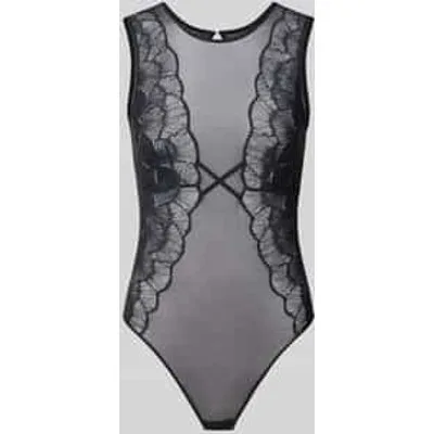 Stringbody van Triumph;Palina Moonlight Kiss ;Elastische materiaalmix;Nauwsluitend model;Semi-transparant design;Geweldige steun, zelfs in grote maten;Comfortabele drukknoopsluitingen;Mouwloos design;Met kant;Glanzend lurexgaren;Ongewatteerd, zonder beugel;Gladde buitenkant, zachte binnenkant;Geraffineerde snit;Ronde hals;Ruglengte bij maat S: 97 cm