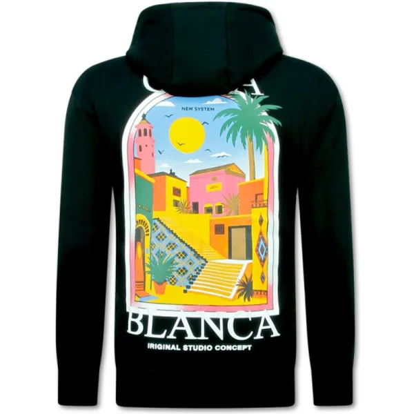 Oversized Hoodie Heren met Capuchon - CASA BLANCA - Dik Geweven - 5993 - Zwart - Specificaties:- Oversized Hoodie Heren met Capuchon - CASA BLANCA- Mouwen: Lange Mouw- Patroon: Print- Materiaal: 80% Katoen en 20% Polyester- Weefsel: Dik Geweven- Pasvorm: Oversized- Wasvoorschrift: Handwas, Binnenste buiten wassen (Niet in de droger)- Beschikbare maten: M - L - XL - XXL