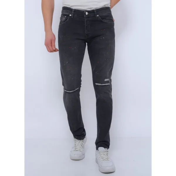 Ripped Heren Jeans met Verfspatten Slim Fit -DC-040- Zwart - Specificaties:- Ripped Heren Jeans met Verfspatten Slim Fit - Kleur: Zie afbeelding - Artikelcode: D&C-040- Lengte: Standaard 34- Pasvorm: Slim Fit / Stretch- Patroon: Verfspatten / Gaten- Sluiting: Knopen- Materiaal: 98% Coton, 2% Spandex- Weefsel: Denimweefsel - Zakken: 2 Voorzakken, 2 Achterzakken- Wasvoorschrift: Machinewas 30 graden- Beschikbare maten: 29 - 30 - 31 - 32 - 33 - 34 - 36 - 38