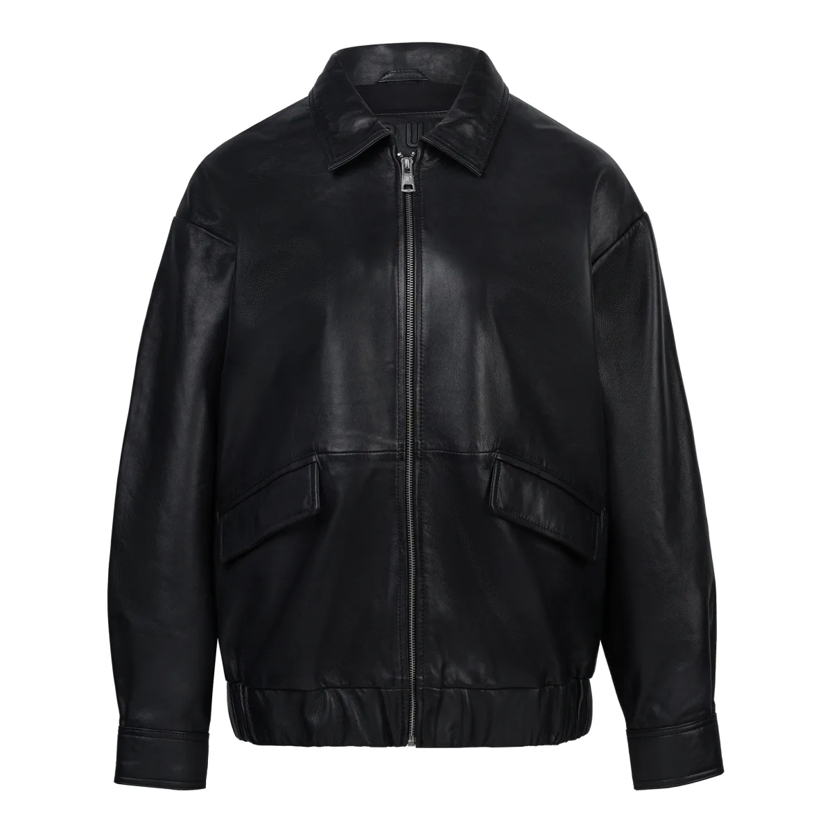 Design: Elastische taille/zoom, Staande kraag, Zakken aan de zijkant; Type sluiting: Ritssluiting; Type jas: Bikerjack; Voering: Licht gevoerd; Materiaal: Leer; Motief: Effen; Extra's: Op staal naden, Gladde stof; Pasvorm: Wijde pasvorm