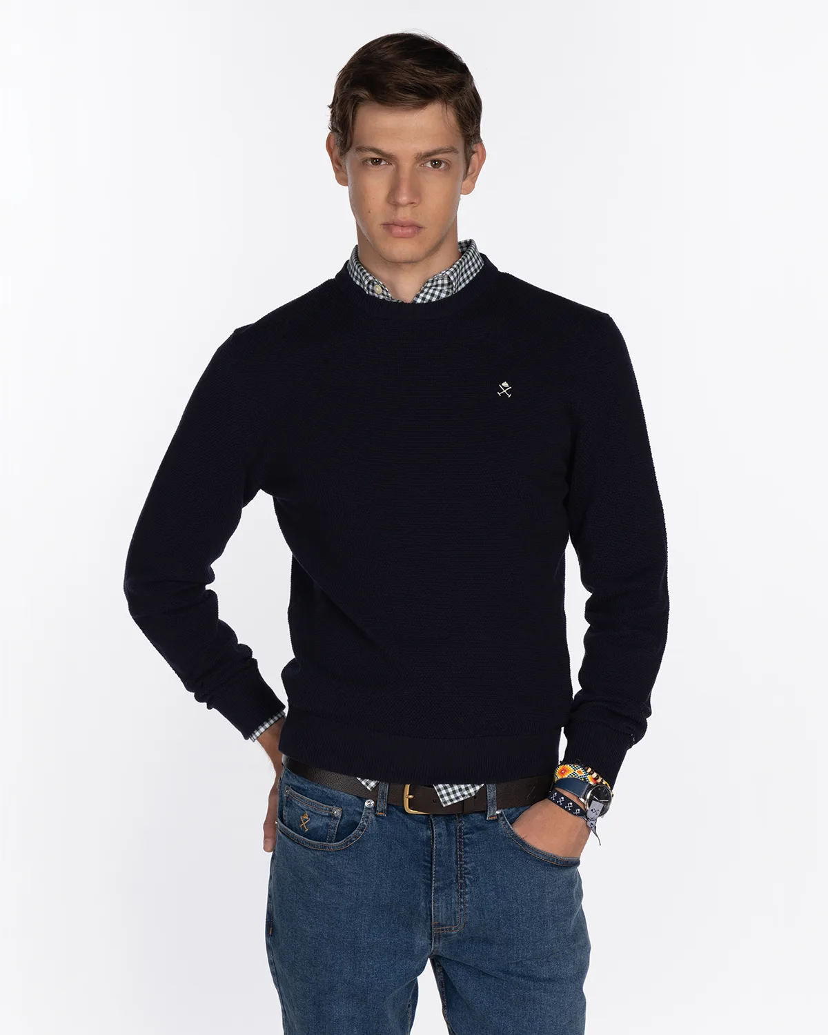 Gebreide trui van zacht, hoogwaardig katoen. Met een klassieke ronde hals, geribbelde details aan de manchetten en zoom en een geborduurd Harper & Neyer-logo. Een veelzijdig kledingstuk dat elegantie en comfort combineert, perfect voor zowel casual als meer verfijnde looks gedurende het seizoen.