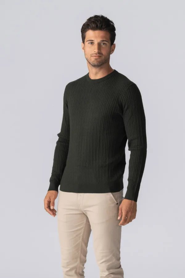 Kabelgebreide herentrui - legerTijdloze stijl en ongeëvenaard comfort Maak kennis met de kabelgebreide herentrui - uw nieuwe favoriet voor verfijnde vrijetijdskleding. Deze klassieke trui combineert tijdloze stijl met ongeëvenaard comfort, waardoor het een essentiële aanvulling is op de garderobe van elke man. Of je je nu kleedt voor een casual dag op kantoor of een ontspannen weekendje weg, deze trui is ontworpen om je look naar een hoger niveau te tillen en je tegelijkertijd gezellig te houden.