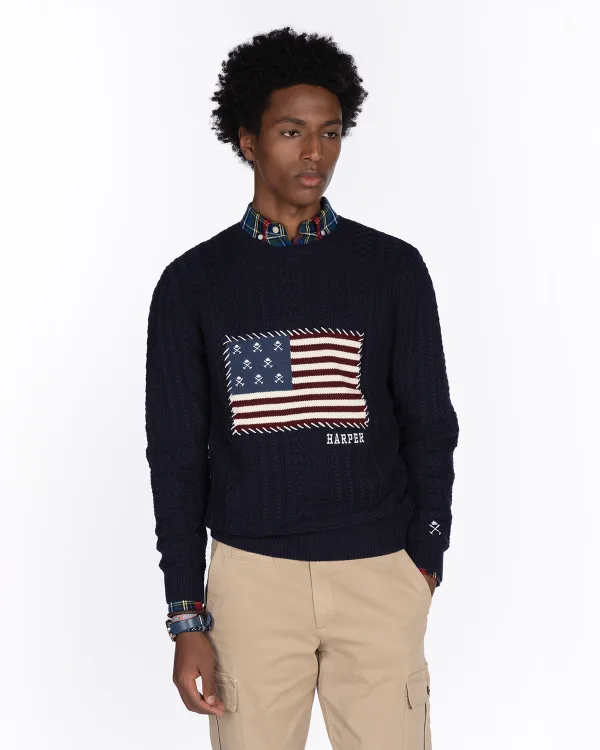Gebreide trui van zacht, hoogwaardig katoen. Met een klassieke ronde hals, geribbelde details aan de manchetten en zoom en een geborduurd Harper & Neyer-logo. Een veelzijdig kledingstuk dat elegantie en comfort combineert, perfect voor zowel casual als meer verfijnde looks gedurende het seizoen.