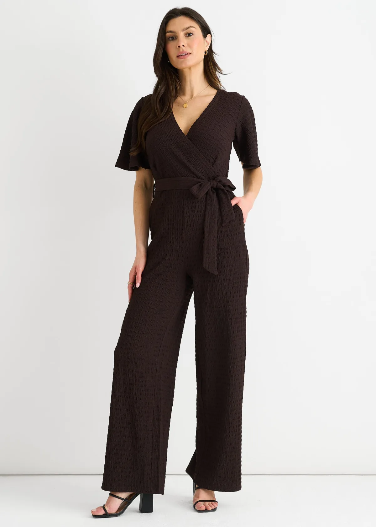 - Bij secretsales.nl kun je Trui wikkel-jumpsuit met wijde pijpen in chocoladestructuur kopen voor slechts €40,02