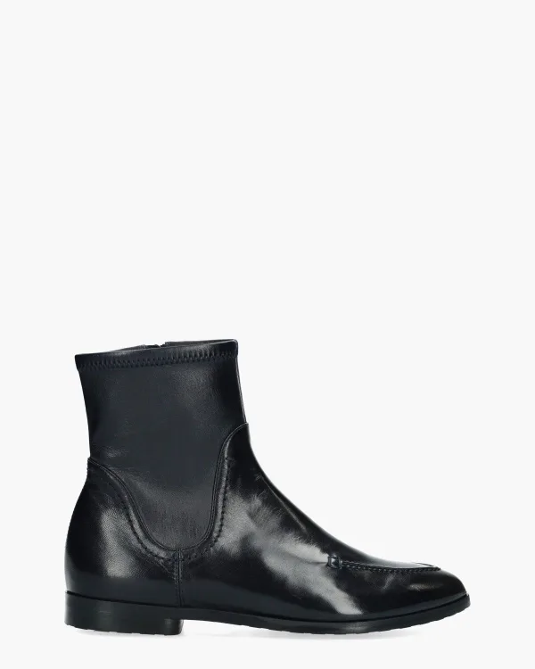 Verfijnde eenvoud. Deze enkelboots voor dames van Truman’s model 4206 zijn uitgevoerd in diep donkerblauw leer met een stretchleren schacht van 15 cm die soepel meebeweegt en perfect aansluit. De mocassin-bewerking voegt een klassieke twist toe aan het slanke design. Het vaste voetbed, de duurzame rubberen zool en het comfortabele hakje van