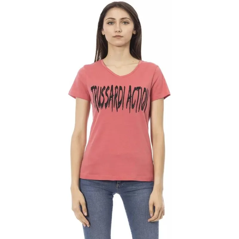 Roze Katoenen Tops & T-Shirt Korte mouwen ontwerp V-hals Voorkant print Gemaakt van hoogwaardig katoen Comfortabel en stijlvol Perfect voor vrouwen Materiaal: Katoen Viscose Maat op label: S