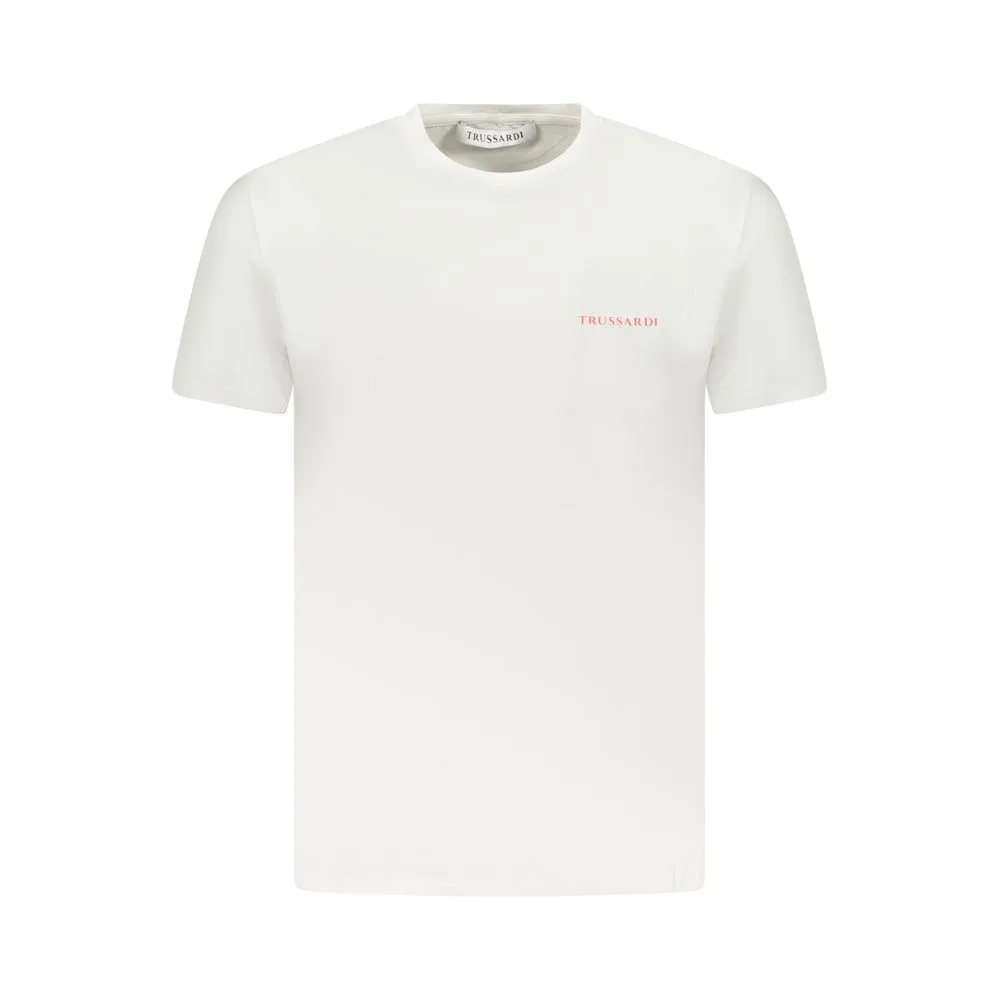 Verhoog je dagelijkse stijl. Ervaar ultiem comfort met dit klassieke katoenen T-shirt. Gemaakt van superschijnt katoen, zorgt het voor comfort de hele dag. Het minimalistische ontwerp, met een subtiele Trussardi-logo, voegt een vleugje onopgesmuktheid toe. Geniet van de onderhoudsvriendelijke constructie, perfect voor een leven met weinig onderhoud. Dit veelzijdige T-shirt gaat moeiteloos van casual uitjes naar ontspannen avonden, waardoor het een essentiële aanvulling op je garderobe is. Kleed het op of af; de keuze is aan jou.