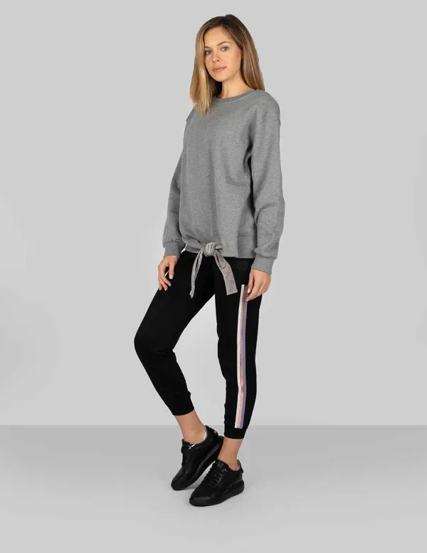 Gemakkelijke pasvorm Gemiddelde hoogte tailleband Licht taps toelopende pijpen Beenuiteinden afgewerkt met manchetten Met een elastische tailleband, extra verstelbaar met een trekkoord met logo Twee zakken aan de voorkant Bedrijfslogo patch op de linkerzak Decoratieve strepen langs de pijpen Gemaakt van hoogwaardig katoen