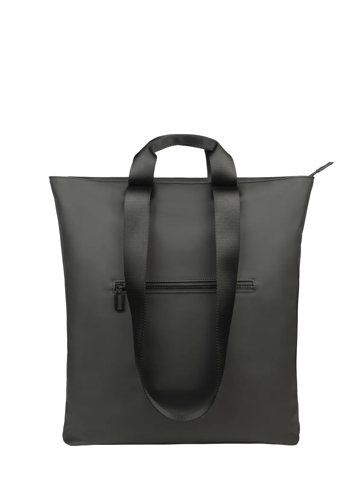 Damesschoudertas met ritssluiting. één open binnenzak. één voorkant met externe zakken met ritssluiting. ontbrekende schouderband. in linthandvat. een binnencompartiment. extern materiaal. Binnenkant van gerecycled polyethyleentereftalaat. Afmetingen: 42x41,5x7 cm. Modeproduct