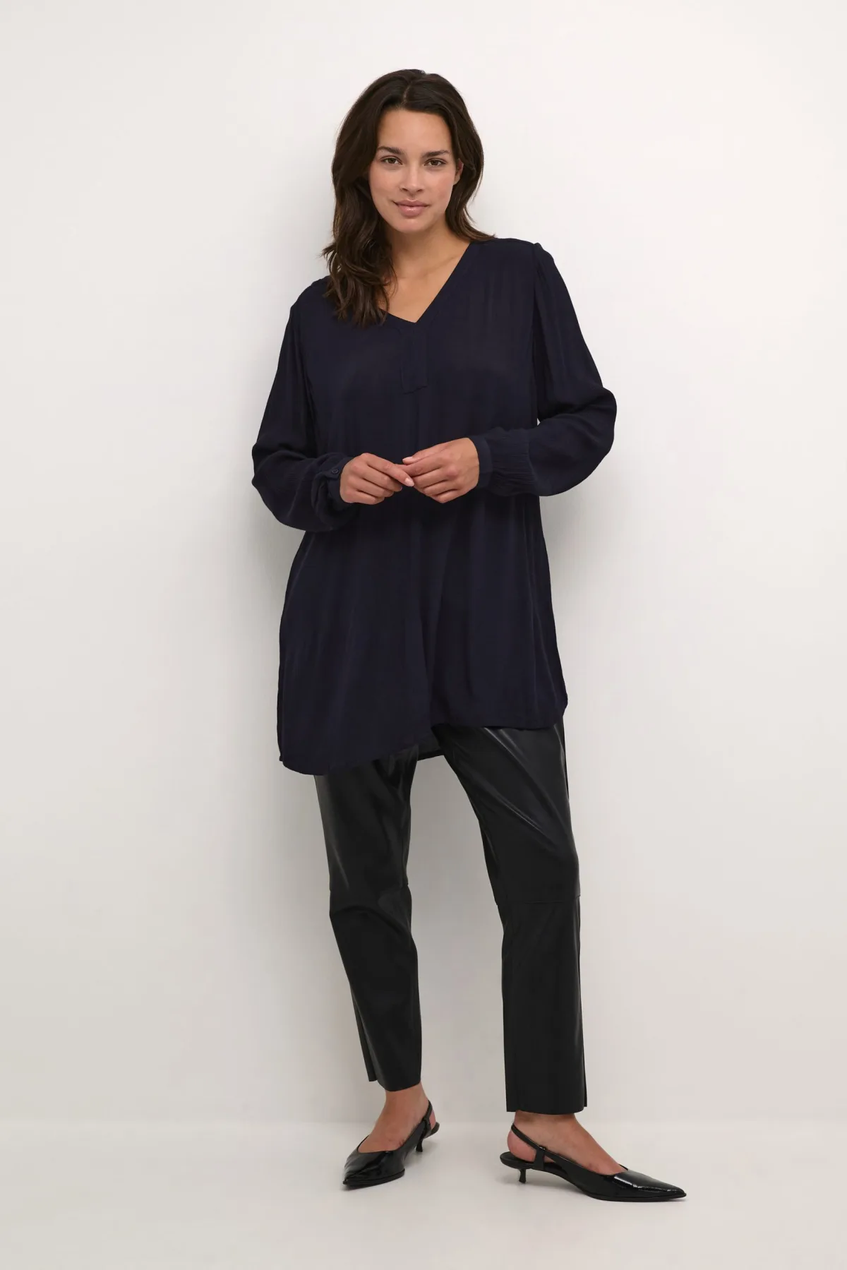 Materiaal: Viscose; Motief: Effen; Kraag: Zonder kraag; Details: Gedrapeerd; Pasvorm: Normale pasvorm; Armlengte: Lange mouw; Lengte: Lange pasvorm