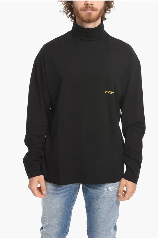 Turtleneck SOLAR POWER katoenen T-shirt in zwart