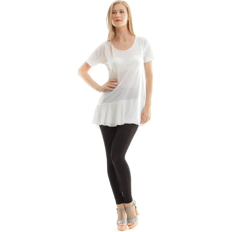 Voel je vrouwelijkheid stromen in deze tuniek met frill-details van Shirts We ♥. Vloeiende tencel-stof is vervaardigd om een korte mouw buitenlaag te creëren die een racerback-innerlaag onthult, ook met een vrouwelijk franjeoppervlak. Het rhinestone Shirts We ♥ logo siert discreet de voorkant aan de onderzijde links. Het model is 178 cm (5'10'') en draagt UK maat 10.
