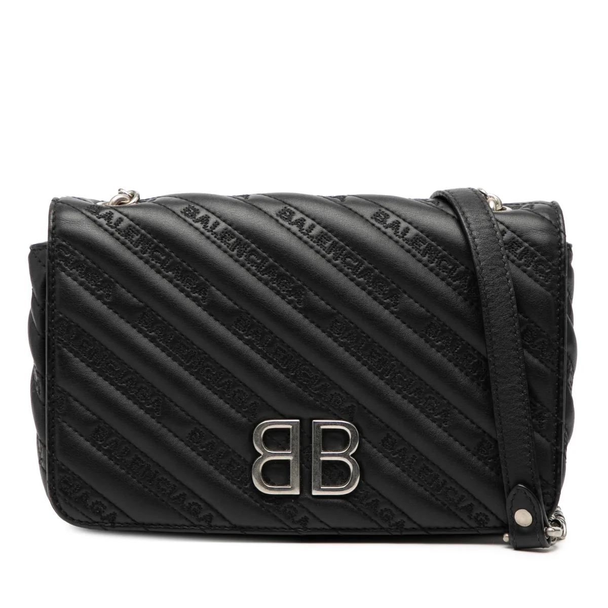Tweedehands Geëmbossed Leer Allover Logo Bb Portemonnee Op Ketting Prijzen