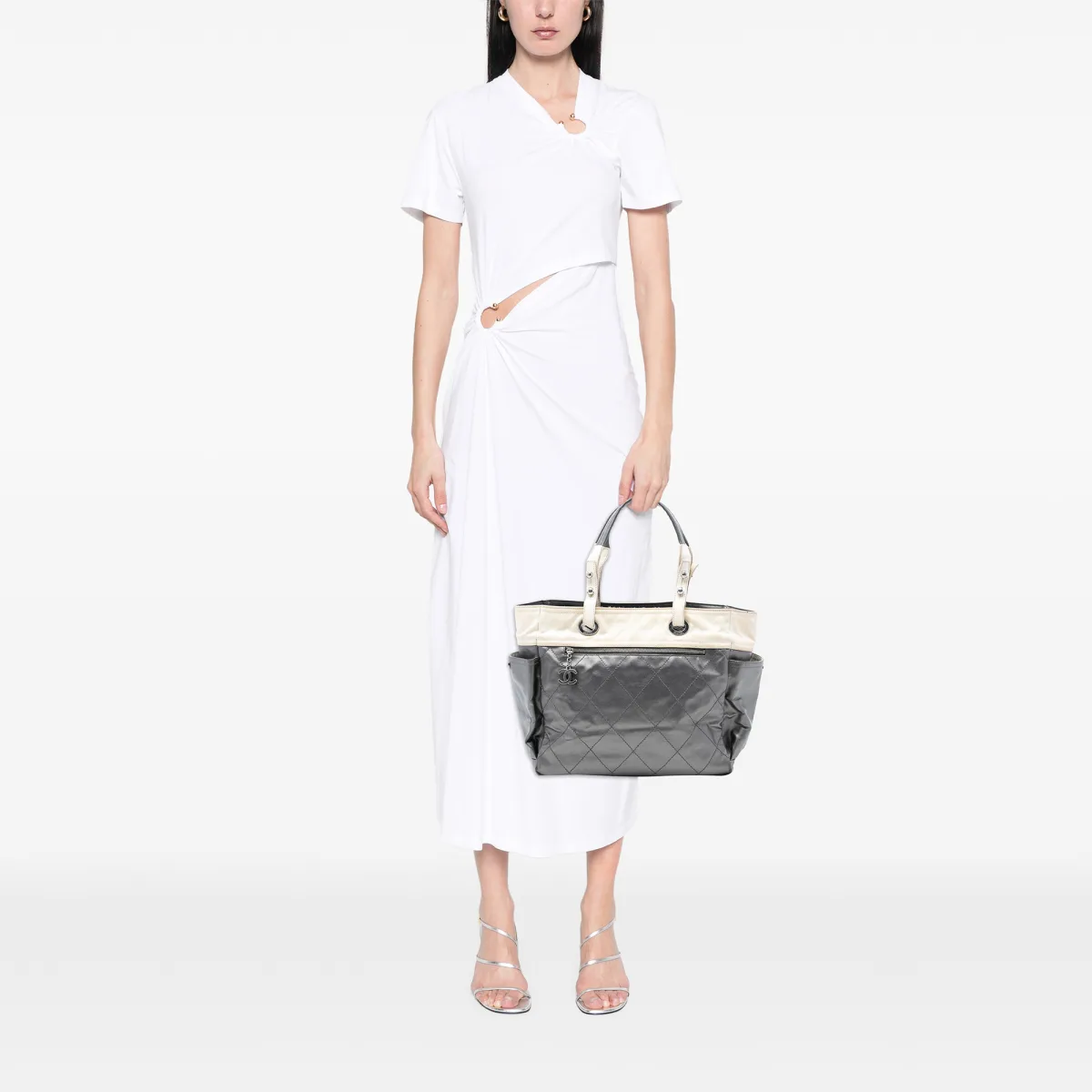 Tweedehands Grote Bicolor Gequilt Coated Canvas Paris Biarritz Tas Prijzen