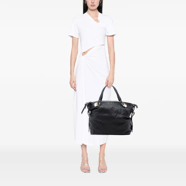 Verhoog, draag en stijl je dag met deze exquisite tweedehands large lederen Bamboo Bar Tote. Gemaakt van luxe leer, is deze stijlvolle tas perfect voor het moeiteloos dragen van je dagelijkse essentials. De kenmerkende gevlochten handvatten zorgen voor zowel een comfortabele grip als een uniek designelement, zodat je zeker opvalt. De premium leren constructie belooft blijvende kwaliteit en een verfijnde esthetiek. Maak naadloos de overstap van werk naar weekend en maak een verfijnde statement waar je ook gaat met dit tijdloze accessoire. Afmetingen: 38 x 42 x 15 cm Conditiebeoordeling: B+ Informatie over de conditie: Achterkant buitenkant gekreukt. Achterkant buitenkant bevlekt met andere. Onderkant buitenkant gekreukt. Hoeken buitenkant versleten. Voorkant buitenkant gekreukt. Voorkant buitenkant bevlekt met andere. Handvat buitenkant versleten. Handvat buitenkant bevlekt met andere. Interieur pocket bevlekt met andere. Interieur voering bevlekt met andere. Praktische bevestiging bekrast. Het item heeft een geur van andere. Rits bekrast.