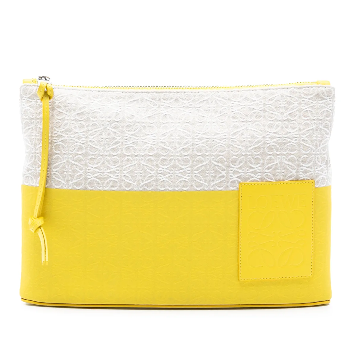 Organiseren, dragen, stylen. Ontdek de verfijnde charme van deze tweedehands Repeat Anagram Jacquard en Leer Oblong Pouch, ontworpen om je dagelijkse routine te verbeteren. Vakkundig vervaardigd van duurzaam canvas met de kenmerkende Anagram jacquard, aangevuld met luxe leren accenten, biedt deze pouch moeiteloze toegang met een veilige ritssluiting aan de bovenkant. De stevige constructie zorgt ervoor dat je essentials beschermd en netjes georganiseerd zijn. Perfect om je dagelijkse benodigdheden binnen handbereik te houden, integreert deze stijlvolle accessoire naadloos in elke look, en voegt een vleugje ontwerp flair en praktische elegantie toe aan je ensemble. Staat Beoordeling: AB Informatie over de Staat: Onderkant Buitenoppervlak Krassen. Onderkant Buitenoppervlak Vlekken met Ander. Hoeken Buitenoppervlak Vlekken met Ander. Voorkant Buitenoppervlak Krassen. Binnenvoering Vlekken met Ander. Rits Krassen.