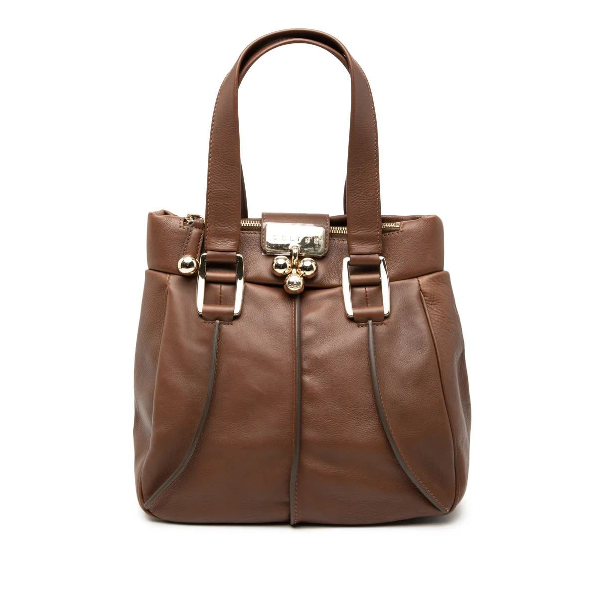 Draag, stijl en beveilig je essentiële spullen met deze elegante tweedehands leren handtas. Verhoog je dagelijkse look met deze tijdloze accessoire, ontworpen voor zowel verfijning als praktisch gebruik. De klassieke tote-silhouet biedt ruime ruimte voor al je dagelijkse benodigdheden, terwijl de verfijnde bovenhandgreep zorgt voor een comfortabele en chique draagervaring. Een robuuste ritssluiting biedt gemoedsrust, waarbij je spullen veilig zijn, waar je ook heen gaat. Gemaakt van duurzaam leer, belooft dit stuk blijvende kwaliteit en een tijdloze stijl, waardoor het een veelzijdige metgezel is voor werk, weekenduitjes of het toevoegen van een vleugje klasse aan elke outfit. Afmetingen: 23 x 26 x 15 cm Staat Beoordeling: B+ Informaties over de Staat: Achterkant Exterieur Versleten. Slot Krassen. Hoeken Exterieur Versleten. Voorkant Exterieur Versleten. Handgreep Exterieur Versleten. Handgreep Exterieur bevlekt met Ander. Praktische Bevestiging Krassen. Bovenkant Exterieur Versleten. Rits Roestig/Geverfd met Krassen.
