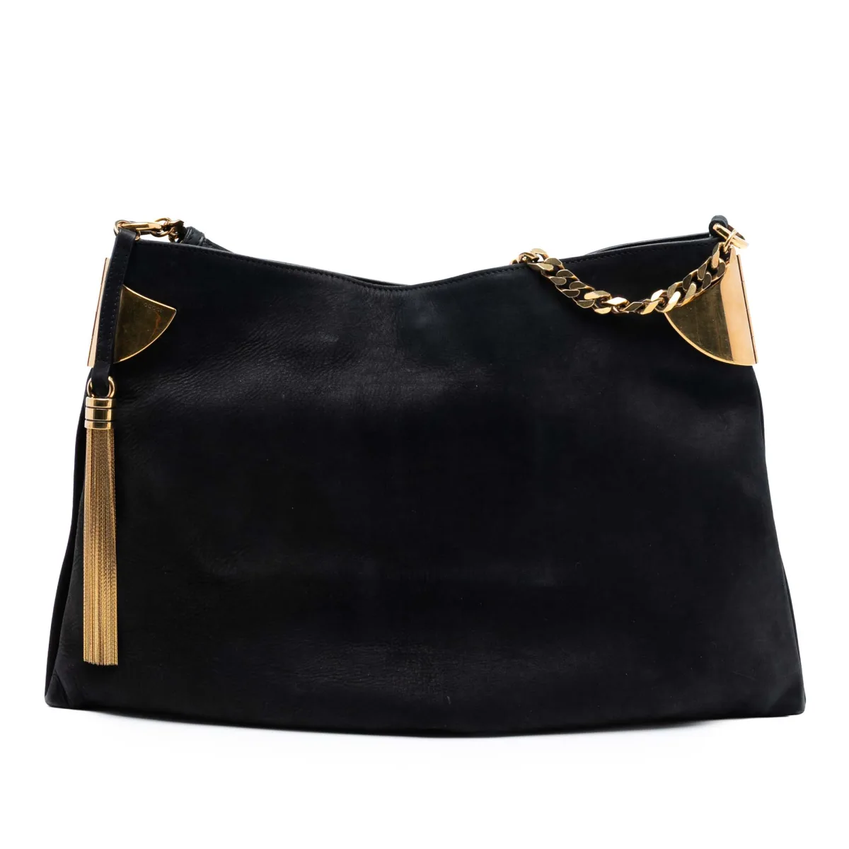 Verhef, versier en betover met deze prachtige vintage Gucci schoudertas. Dit tijdloze accessoire combineert moeiteloos klassiek design met moderne allure, waardoor het een verfijnde aanvulling op elke collectie is. Gemaakt van soepel zwart leer, heeft het opvallende hardware in goudtint, inclusief een chique kettingriem en elegante hoekaccenten, wat zorgt voor een blijvende stijl. Een luxe kwastdetail voegt een vleugje glamour toe en maakt het geheel compleet. Perfect om elke outfit te verfraaien, dit tweedehands stuk is een werkelijk unieke en gekoesterde uitspraak, klaar om je bij elke gelegenheid te vergezellen. Afmetingen: 30,5 x 45 x 1,5 cm Conditiebeoordeling: B+ Informatie over de conditie: Achterzijde buitenkant versleten. Achterzijde buitenkant bevlekt met andere. Onderzijde buitenkant versleten. Onderzijde buitenkant bevlekt met andere. Slot bekrast. Hoeken buitenkant versleten. Voorkant buitenkant gekreukt, bekrast en versleten. Voorkant buitenkant bevlekt met andere. Handvat buitenkant gescheurde stiksels en bekrast. Binnenzak bevlekt met andere. Voering binnenzijde bevlekt met andere. Praktische bevestiging bekrast. Zijkant buitenkant versleten. Bovenkant buitenkant gebroken en versleten. Rits bekrast.