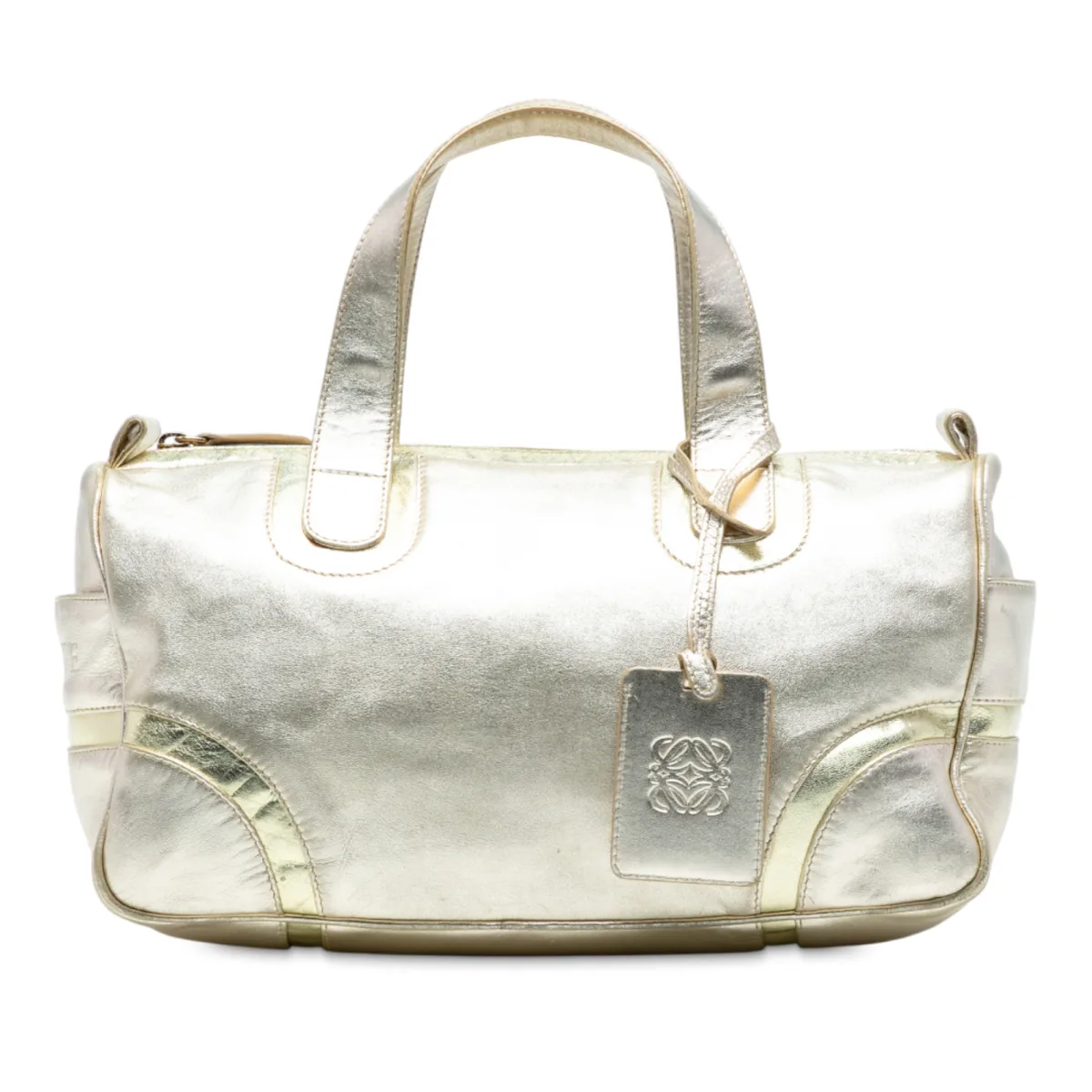 Schitter, style, betover met deze prachtige tweedehands metallic leren handtas. Deze verbluffende handtas met bovenhandvat tilt je look onmiddellijk naar een hoger niveau en biedt een vleugje verfijnde glamour en unieke karakteristiek. Gemaakt van hoogwaardig leer, zorgt het luxe gevoel en de duurzame aantrekkingskracht voor een werkelijk tijdloos accessoire. Het elegante ontwerp en de subtiele metallic glans schakelen moeiteloos over van verfijnde dagevenementen naar chique avondbijeenkomsten, waardoor het perfect is voor elke gelegenheid. Ervaar blijvende elegantie en maak een onderscheidende statement waar je ook gaat met dit prachtig bewaarde stuk. Afmetingen: 18 x 35 x 15,5 cm Conditiewaardering: B+ Informatie over de conditie: Buitenachterkant Krassen Versleten. Buitenbodem Krassen. Buitenbodem bevlekt met Ander. Buitenkanten Versleten. Buitenfront Versleten. Buitenhandvat Versleten. Buitenhandvat bevlekt met Ander. Binnenvoering Losse Stikking. Buitenzijde Versleten. Ritssluiting Krassen