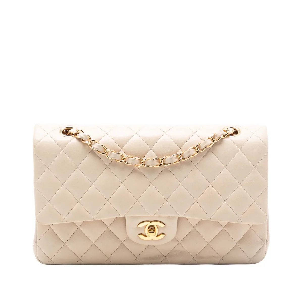 Verhoog, definieer, betover. Deze pre-owned klassieke double flap tas van lamsleder verhoogt direct je stijl en biedt een vleugje tijdloze luxe. Het iconische geborduurde ontwerp en de sumptueus zachte lamslederconstructie zorgen voor blijvende elegantie. De praktische dubbele flap zorgt ervoor dat je essentiële spullen veilig en mooi georganiseerd zijn. Gecreëerd met uitzonderlijke kwaliteit, belooft deze geliefde accessoire een verfijnde basis te zijn in je garderobe voor de komende jaren. Het voegt moeiteloos een vleugje verfijning toe aan elke outfit en is perfect voor elke gelegenheid. Afmetingen: 16 x 25 x 6,5 cm Conditiebeoordeling: B+ Informatie over de toestand: Achterkant buitenkant gekreukt en versleten. Achterkant buitenkant bevlekt met andere vlekken. Onderkant buitenkant bekrast en versleten. Onderkant buitenkant bevlekt met andere vlekken. Sluiting bekrast. Hoeken buitenkant versleten. Voorkant buitenkant versleten. Voorkant buitenkant bevlekt met andere vlekken. Handvat buitenkant versleten. Handvat buitenkant bevlekt met andere vlekken. Binnenzak bevlekt met andere vlekken. Binnenvoering versleten. Binnenvoering bevlekt met kleurtransfer. Buiten zak bevlekt met andere vlekken. Praktische bevestiging bekrast. Zijkant buitenkant versleten. Zijkant buitenkant bevlekt met kleurtransfer. Bovenkant buitenkant versleten. Rits bekrast.