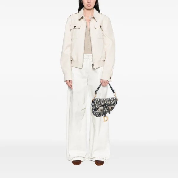 Tweedekans Obliquus Geborduurd Canvas Zadelhandtas