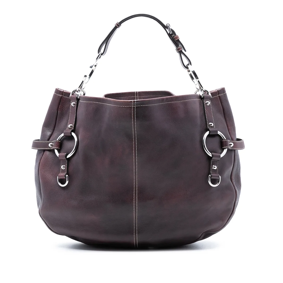 Ontdek, omarm, verhoog je stijl met deze tweedehands Gucci Charlotte Tote. Deze vintage hobo tas biedt blijvende elegantie en tijdloze charme. Gemaakt van rijk, donker leer met een zachte, versleten uitstraling, straalt de slouchy silouette met prominente stiksels een ambachtelijke aantrekkingskracht uit. Gepolijst hardware in zilvertint, waaronder decoratieve ringen en een D-ring accent, voegt een vleugje ingetogen luxe toe. Het comfortabele, vertrouwde gevoel van het leer zorgt voor moeiteloos draagcomfort. De blijvende kwaliteit en tijdloze ontwerpen maken het tot een veelzijdige en elegante accessoire, die naadloos integreert in elke levensstijl, van dagelijkse boodschappen tot verfijnde avonden uit. Afmetingen: 35 x 47 x 12 cm Staat Beoordeling: B+ Staat Informatie: Achterkant Exterieur Versleten. Onderkant Exterieur Versleten. Slot Krassen. Hoeken Exterieur Versleten. Versiering Krassen. Vorderkant Exterieur Versleten. Handvat Exterieur Versleten. Binnenzak bevlekt met Overige. Voering Binnen bevlekt met Overige. Praktische Bevestiging Krassen. Zijkant Exterieur Versleten. Bovenkant Exterieur Versleten. Rits Krassen.