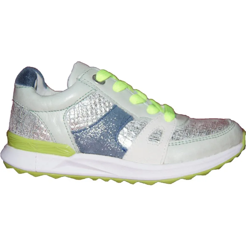 Twins, meisjesschoen van Bunnies. stevige schoenen met de uitstraling van een sneaker. een goede hiel omsluiting en lederen voering kleuren: groen / beige en zilver. let op! wijdte 2,5 is zeer smal