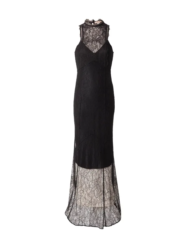 Design: Gevoerde zoom/rand, Keyholesluiting, Rug rits; Type sluiting: Ritssluiting; Materiaal: Viscose; Halstype: Opstaande kraag; Motief: Effen; Details: Cut-outs, Kant; Extra's: Licht transparant; Lengte: Lang/maxi; Snit: Recht; Pasvorm: Normale pasvorm; Armlengte: Mouwloos