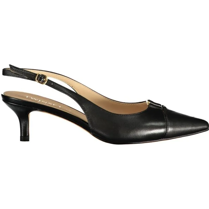 Stap in onmiskenbare stijl met de TWINSET Sling Back Sandal. Een bewijs van chique eenvoud, deze sandalen zijn een modieuze keuze met hun opvallende contrasterende details en iconische logo. Verhoogd door een comfortabele hak van 3 cm, zijn ze ontworpen om een statement te maken terwijl ze comfort bieden voor de hele dag. Perfect om een vleugje verfijning toe te voegen aan iedere outfit. Materiaal: 100% Leder Land van herkomst: CHINA Kleur: Zwart