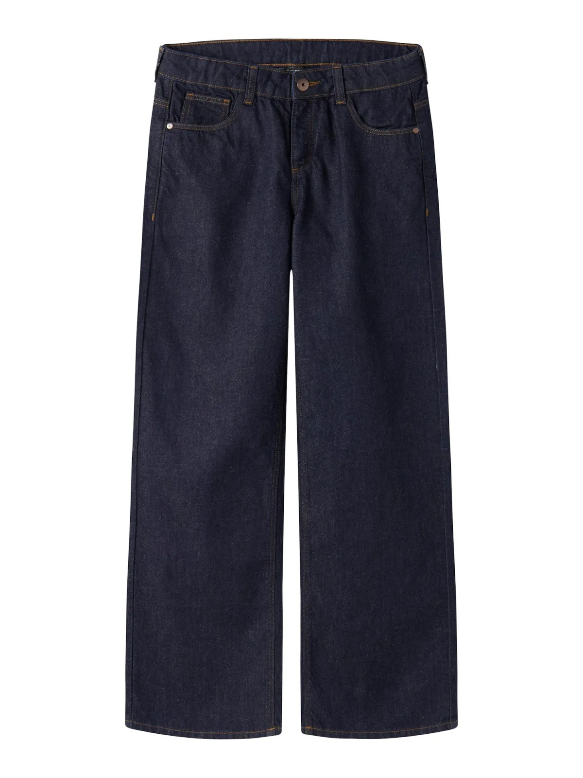 Design: Gevoerde zoom/rand, 5-pocket-style; Type sluiting: Knoopsluiting; Materiaal: Denim; Motief: Effen; Extra's: Riemlussen; Wassing: Rinsed/dark washed; Lengte: Lang/maxi; Pasvorm: Wide leg