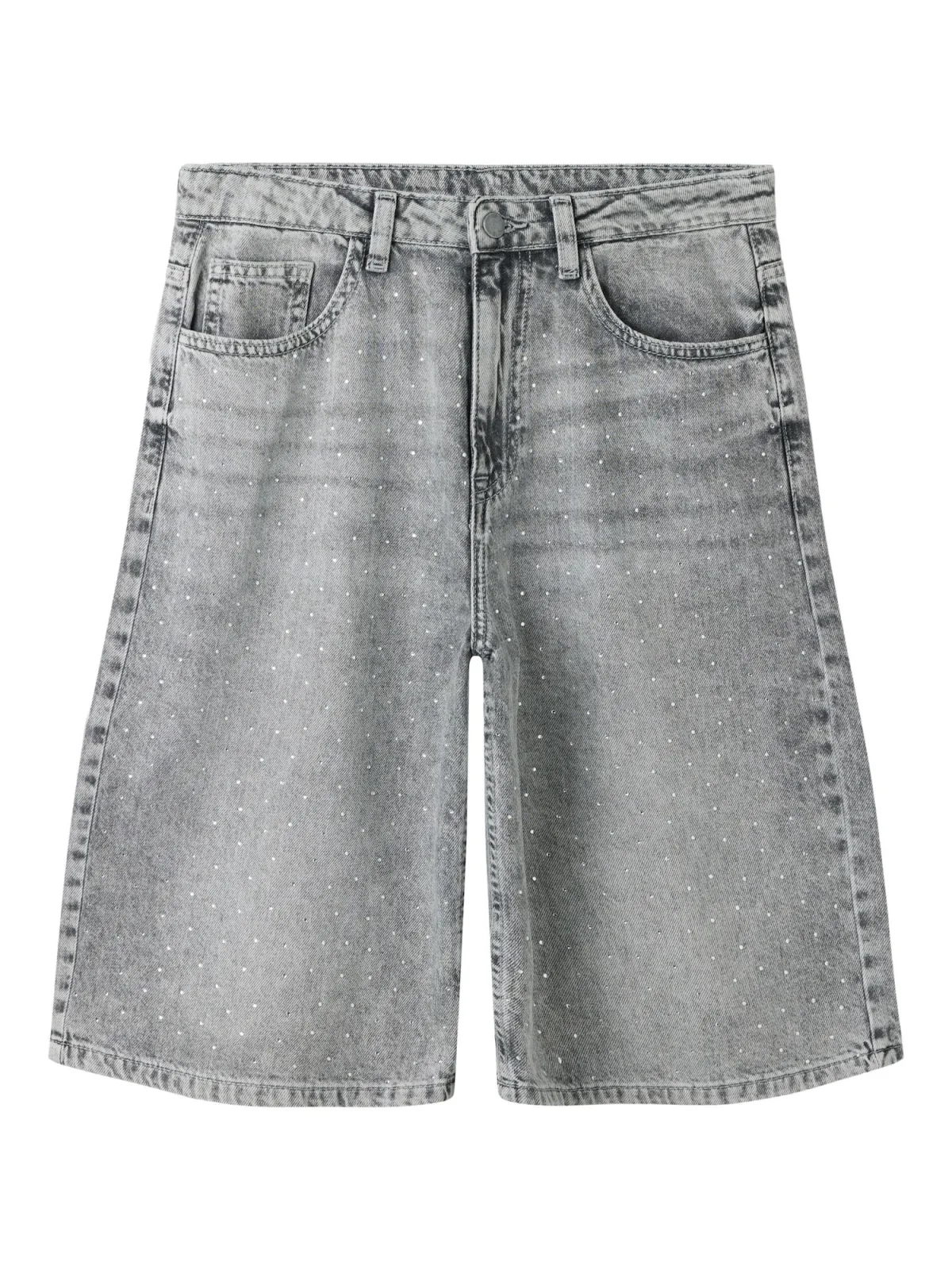 Design: 5-pocket-style; Type sluiting: Ritssluiting; Materiaal: Denim; Motief: Gestippeld; Details: Sierstenen; Extra's: Gewassen effect; Wassing: Light washed; Lengte: Knielengte; Pasvorm: Wide leg; Taillehoogte: High waist