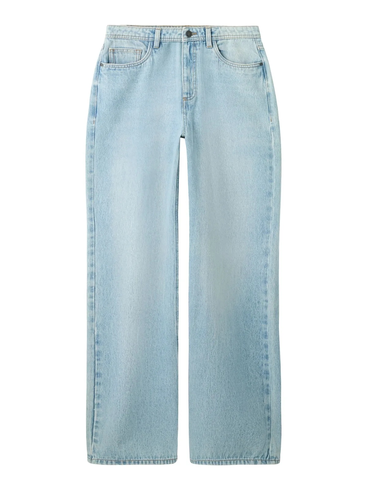 Design: Ritssluiting, 5-pocket-style; Type sluiting: Ritssluiting; Materiaal: Denim; Motief: Effen; Extra's: Studs, Contrasterende naden; Wassing: Light washed; Lengte: Lang/maxi; Pasvorm: Wide leg; Taillehoogte: High waist