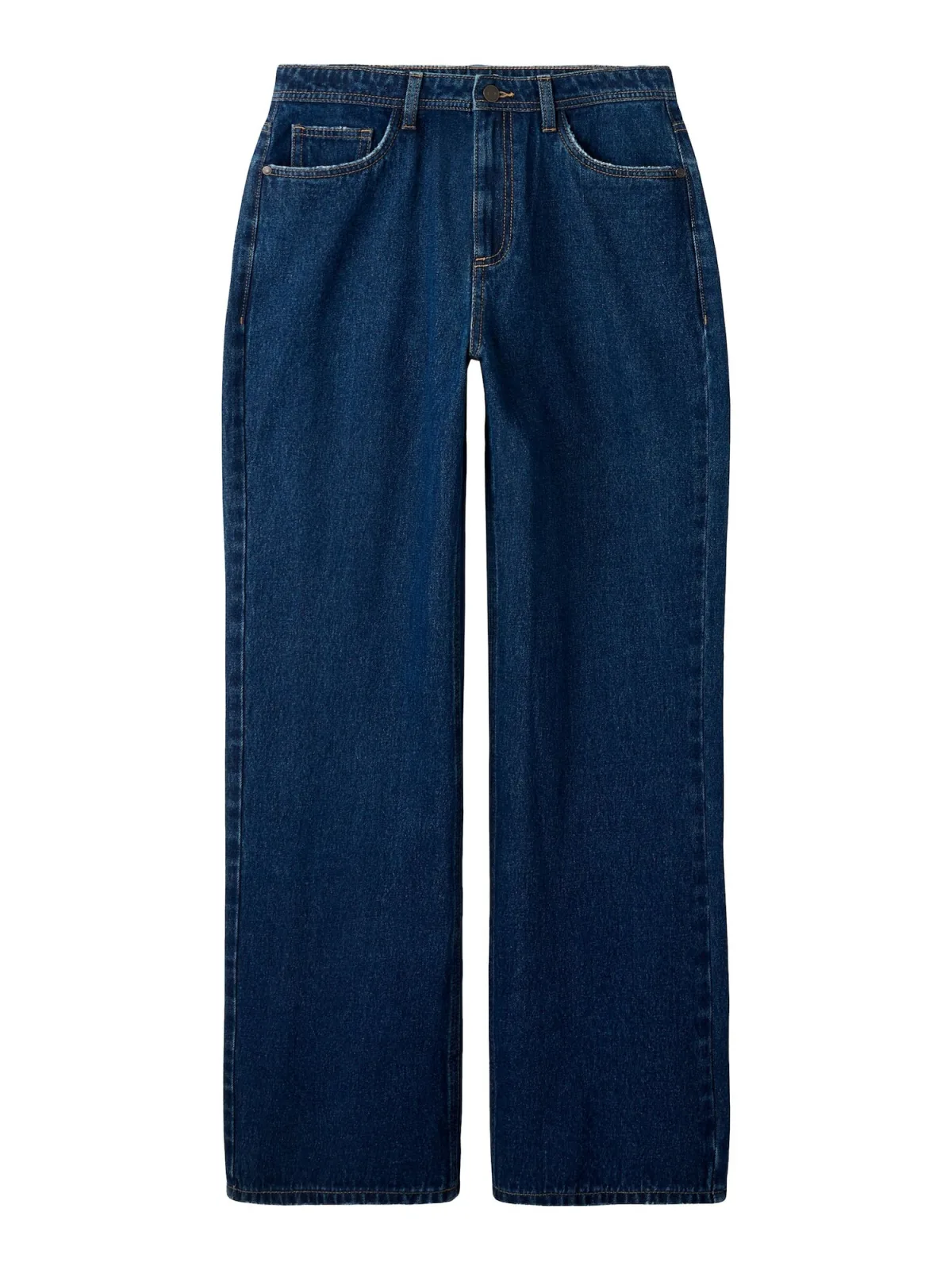 Materiaal: Denim; Motief: Effen; Wassing: Rinsed/dark washed; Lengte: Lang/maxi; Pasvorm: Wide leg; Taillehoogte: High waist