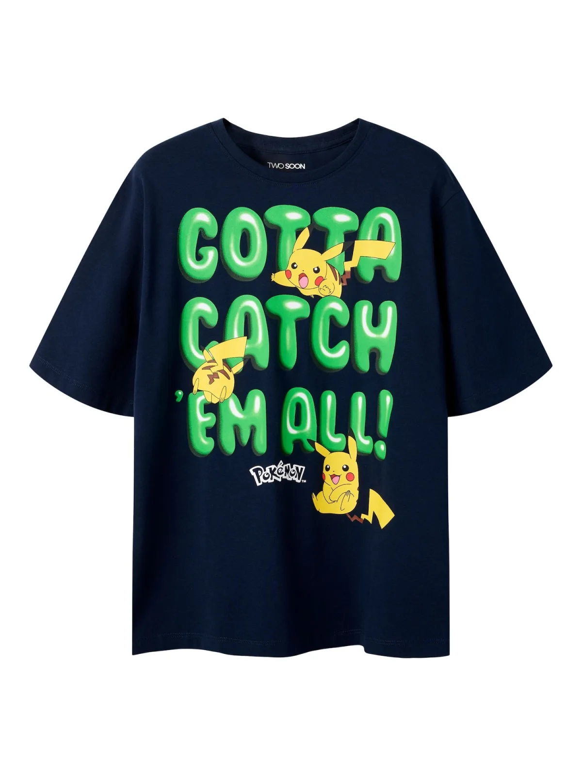 TWO SOON Shirt ‘Pokémon’ navy / geel / groen