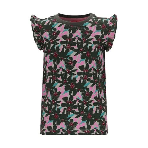 Fris, speels en toch makkelijk te combineren, dat is dit TYGO & vito Tove meisjes T-shirt in olijfgroen met roze accenten. Het shirt heeft korte mouwen en een ronde hals, waardoor het elke dag weer zo uit de kast gepakt wordt. De all-over bloemenprint en subtiele ruches geven een vrolijke uitstraling, zonder dat het te druk oogt. Gemaakt van 100 procent katoen met een soepele jersey touch voelt het lekker zacht aan op de huid.Vrolijke details voor elke dag Olijfgroene basis met roze bloemenprint voor een speelse look Korte mouwen met rechte inzet, ideaal voor school en spelen Ronde hals die comfortabel aansluit zonder te knellen Ruches als stijlvol detail langs het voorpand voor extra charme Gemaakt van 100 procent katoen met een zachte jersey structuur Deel van een co-ord set, leuk te combineren met bijpassende items Geen sluiting, het shirt gaat makkelijk over het hoofd Wasbaar op 30 graden en warm strijkbaar, zo blijft de print mooiComfortabel bij spelen, logeren en schooldagenDit T-shirt past goed bij een korte broek, legging of jeans en is daardoor geschikt voor allerlei momenten. Voor een complete set combineer je het met de co-ord items uit dezelfde collectie, handig als je snel een matchende outfit wilt samenstellen. De ademende katoenkwaliteit zorgt dat het ook op warmere dagen prettig draagt.TYGO & vito: stoer en speels kinderspulTYGO & vito staat bekend om kinderkleding die lekker zit en tegen een stootje kan. De prints zijn eigentijds, de pasvorm is afgestemd op actieve kids en de materialen zijn gekozen voor dagelijks draagplezier. Met dit Tove T-shirt kies je voor een betrouwbaar item waar je kind zich vrij in kan bewegen.Een vrolijk basic T-shirt dat moeiteloos meegaat in het ritme van alledag.