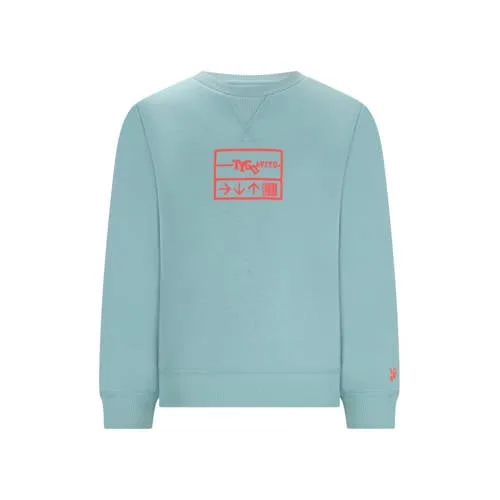 Deze TYGO & vito sweater heeft mouwen en een halslijn. De sweater is gemaakt van sweat en heeft een printopdruk. Met geribde boorden sluit de sweater aan rond hals en mouwen.