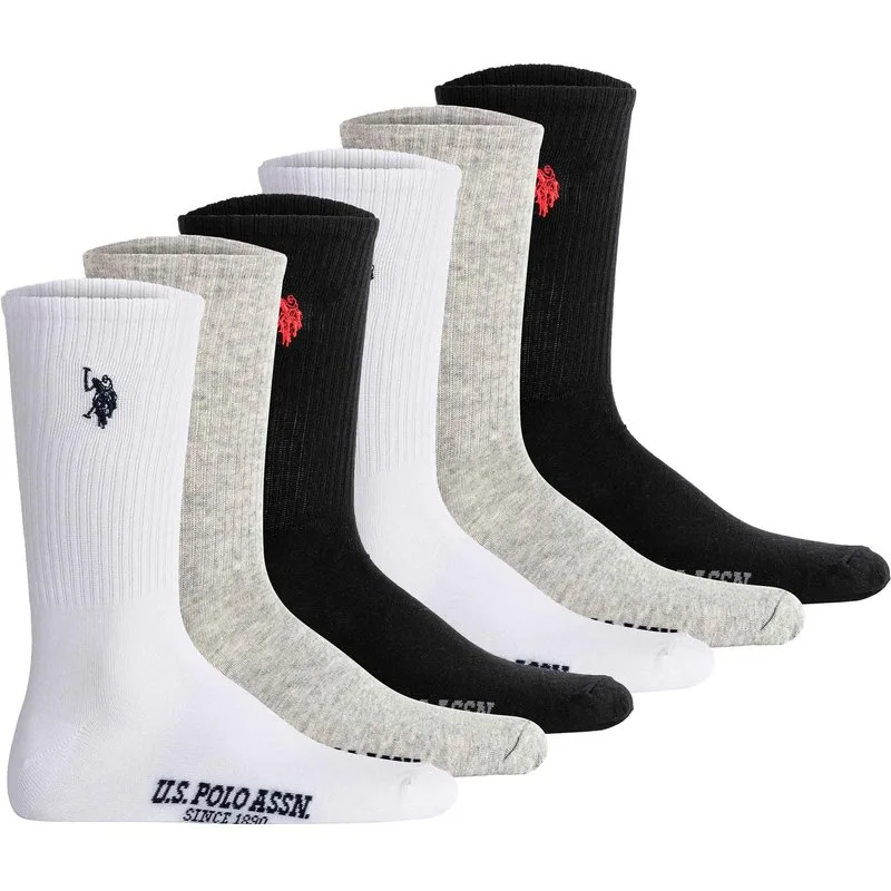 Sportsokken in een sixpack van US POLO ASSN. Gemaakt van een katoenmix met stretch, elastische ribboorden, klein logo op de schacht en verstevigde slijtagezones.