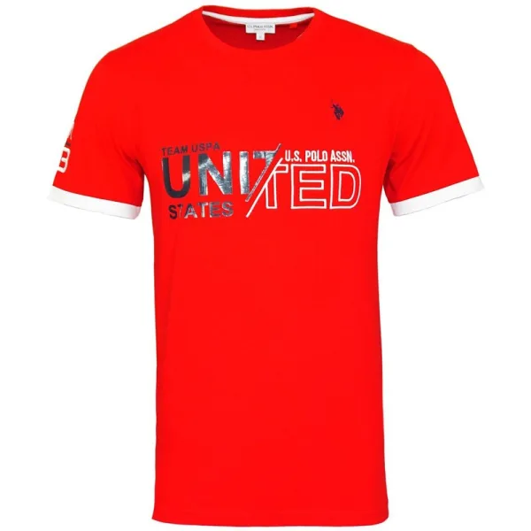 Prachtig T-shirt met ronde hals en contrasterende boorden aan de mouwen. Bedrukt en geborduurd op de borst TEAM USPA UNITED STATES en poloruiter.