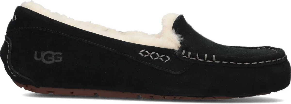 Uit de collectie van UGG Australia, zwarte pantoffel, Ansley Black met decoratieve stiksels. De binnenzijde is geheel gevoerd met wol en de buitenzijde is van suède. Deze Uggs hebben een grove rubber zool. Let op: Wij adviseren dit item te onderhouden met de producten speciaal voor Ugg. Deze kun je vinden bij de accessoires onder het kopje onderhoudsartikelen. *Dit model valt erg klein, wij adviseren een maat groter te bestellen.