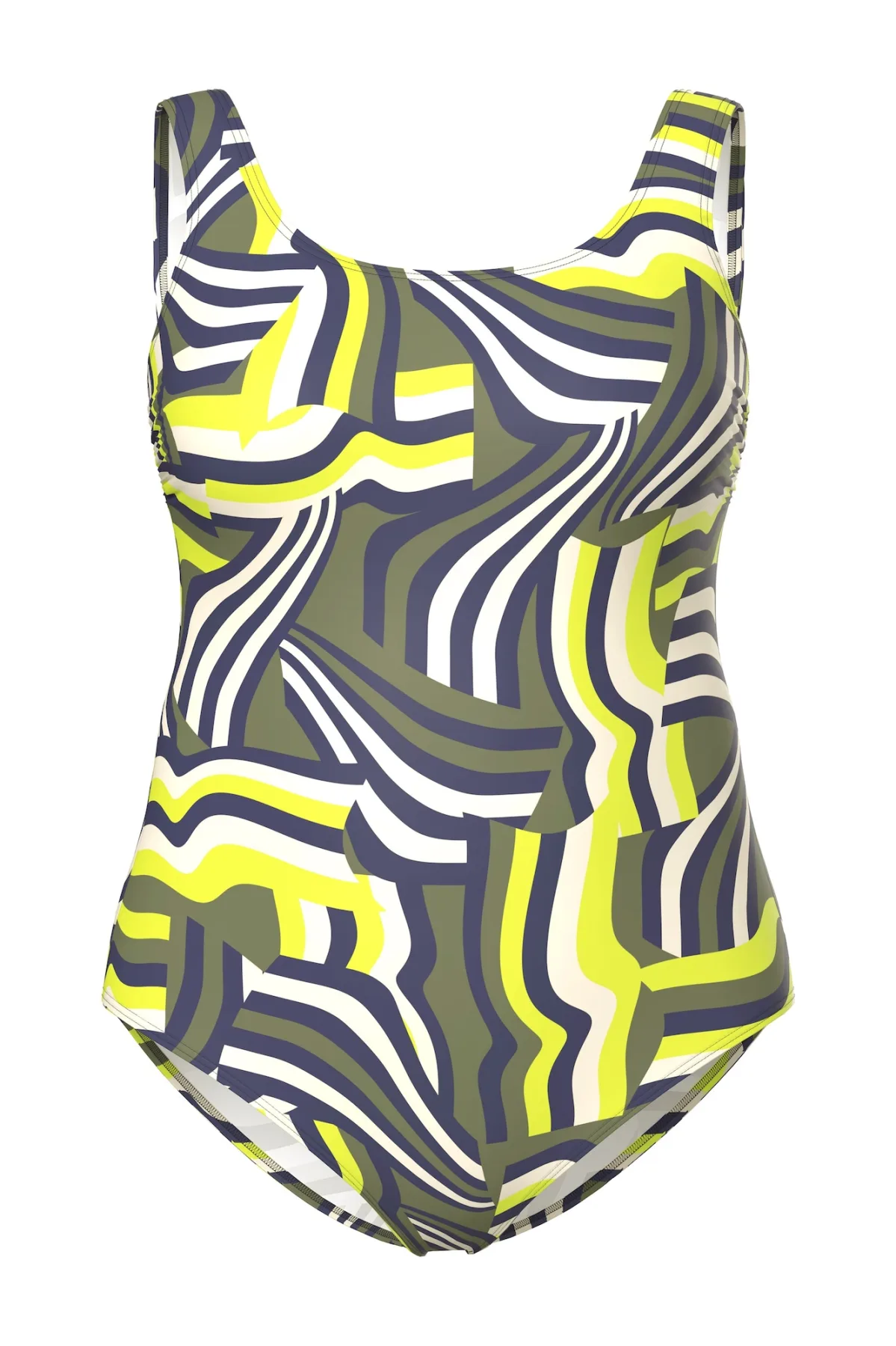 Specificaties: Ulla Popken Badpak geel / olijfgroen / wit