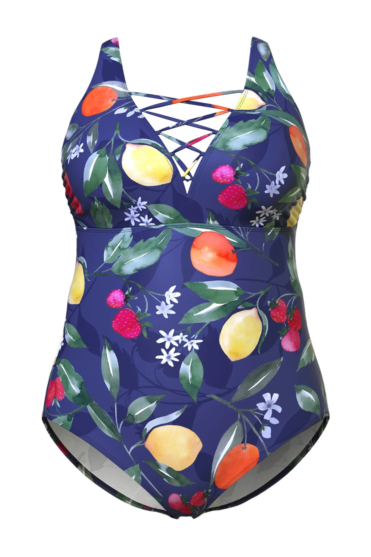 Specificaties: Ulla Popken Badpak marine / geel / groen / oranje