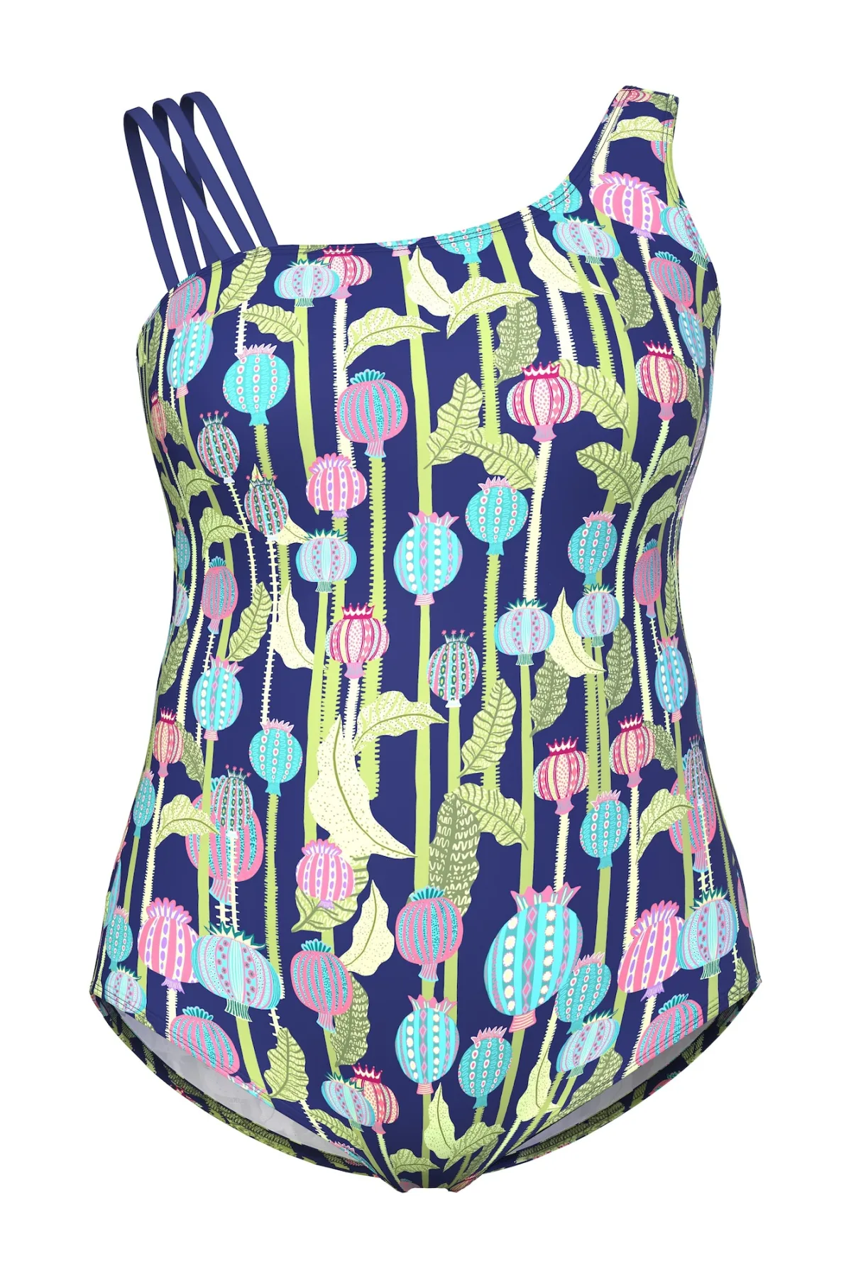 Ulla Popken Badpak navy / turquoise / lichtgroen / oudroze