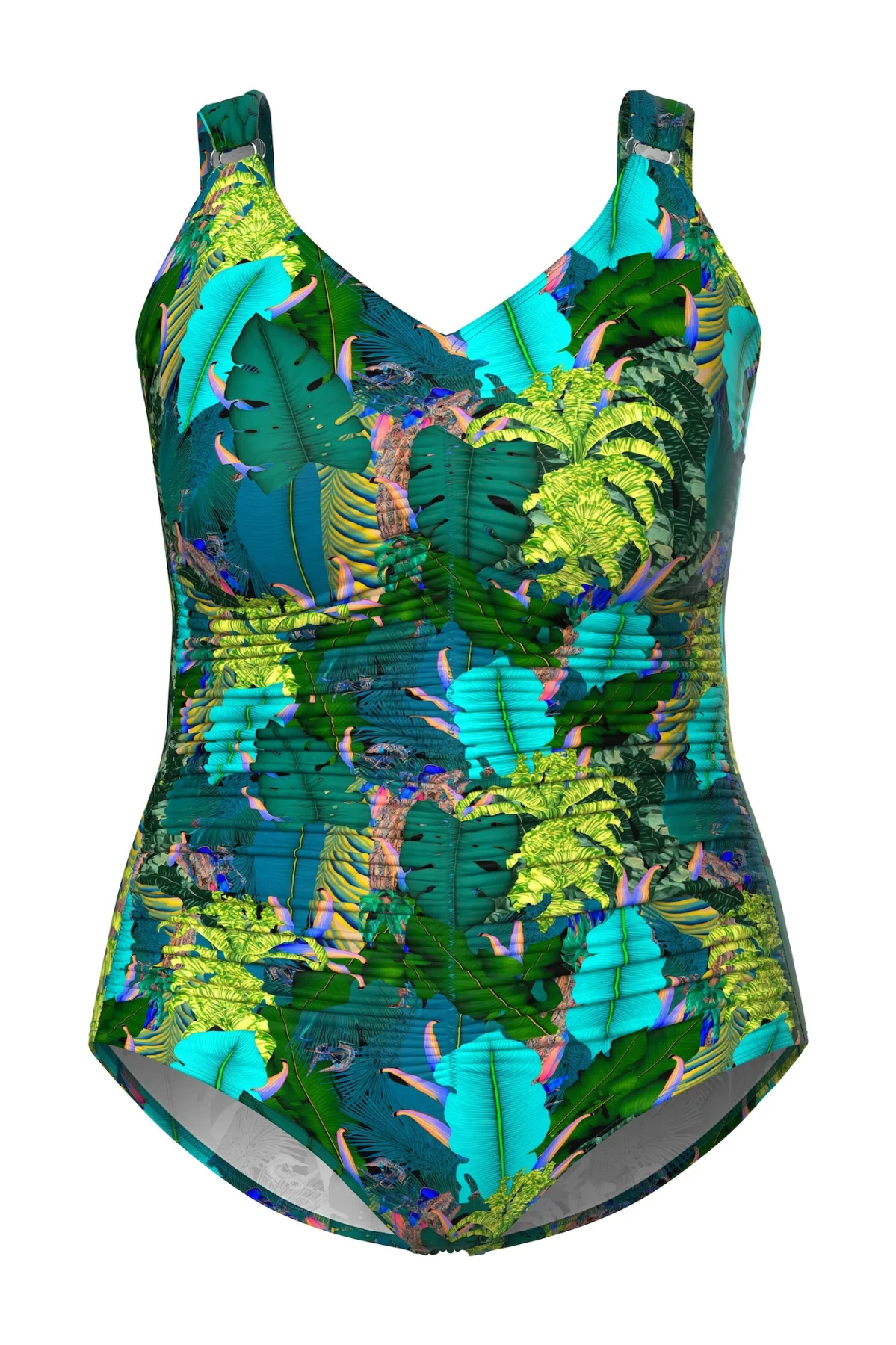 Ulla Popken Badpak turquoise / donkergroen / lila / oranje