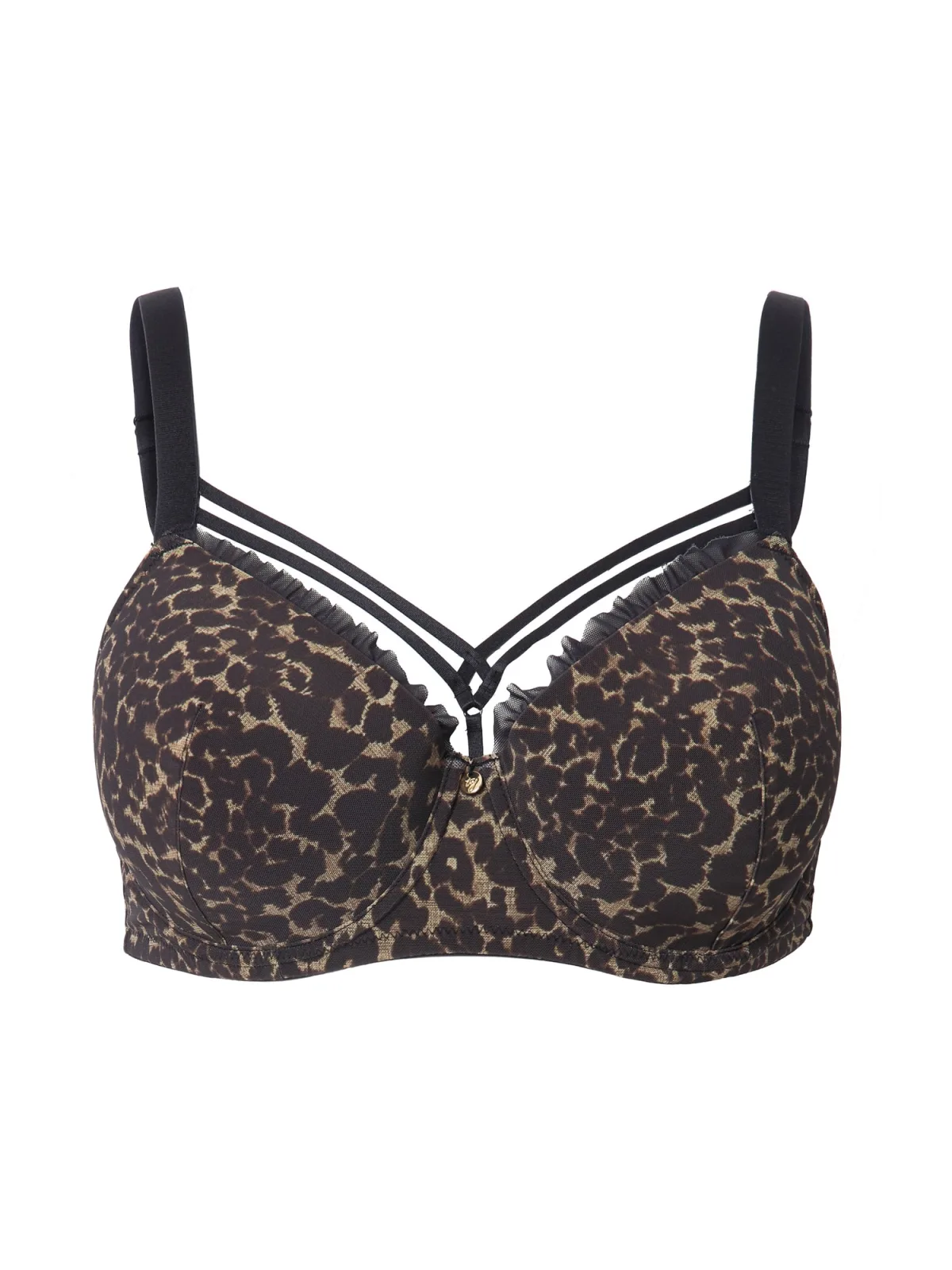 Cup soorten: Full cup bh; Beugel: Met beugel; Design: Gevoerde zoom/rand; Type sluiting: Haakjes; Motief: Dierenprint; Details: Cut-outs, Ruches; Extra's: Label plaatje, Verstelbare bandjes, All-over patroon