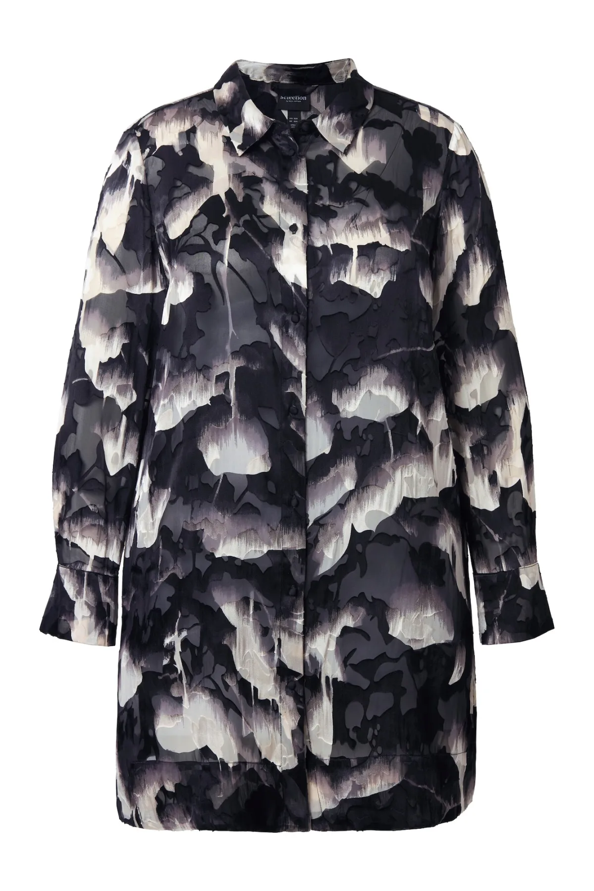Blouse type: Klassieke blouse; Design: Gevoerde zoom/rand, Placket, Zijdelingse inkepingen; Materiaal: Viscose; Extra's: All-over patroon; Pasvorm: Wijde pasvorm; Armlengte: Lange mouw; Lengte: Lange pasvorm