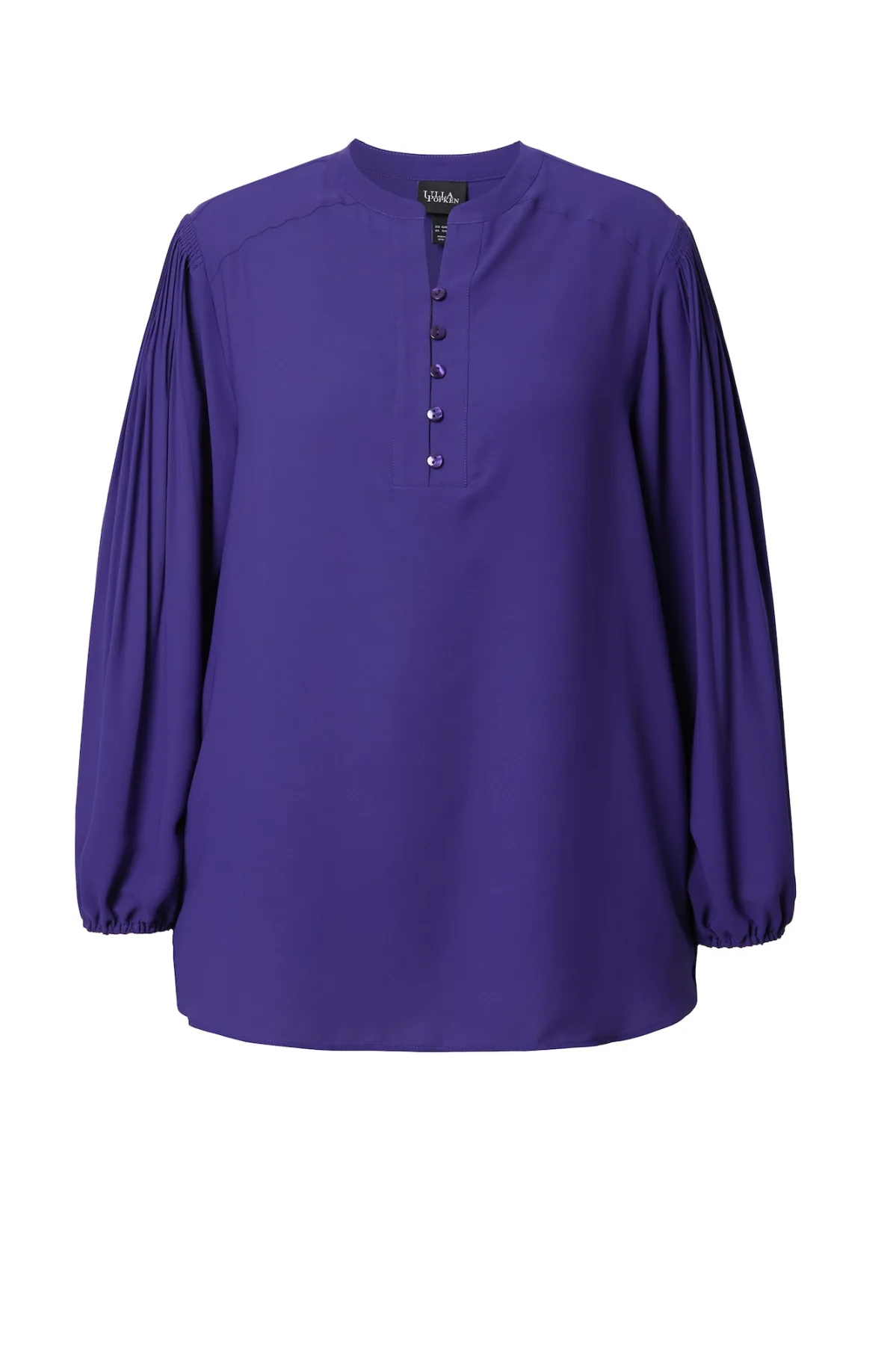 Blouse type: Wijde blouse; Design: Gevoerde zoom/rand, Rechte zoom, Knop placket; Type sluiting: Knoopsluiting; Motief: Effen; Kraag: Zonder kraag; Details: Plooien; Extra's: Biezen, Op staal naden, Gladde stof; Pasvorm: Losse pasvorm; Armlengte: Lange mouw; Lengte: Lange pasvorm