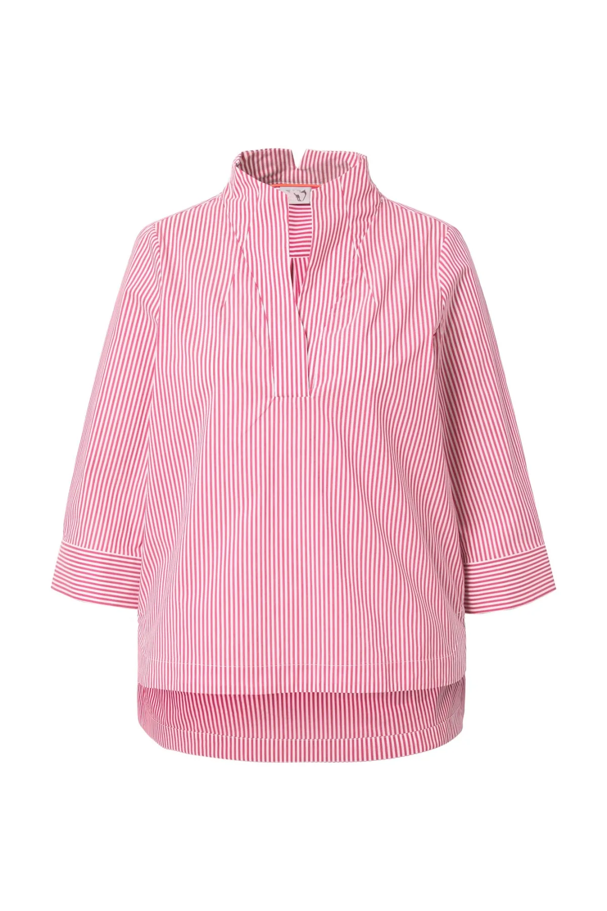 Blouse type: Wijde blouse; Design: 1-knoops manchetten, Gevoerde zoom/rand, Rugplooi, Zijdelingse inkepingen, Verlengd rugpand; Materiaal: Katoen; Motief: Gestreept; Kraag: Opstaande kraag; Details: Plooien; Extra's: All-over patroon, Voelt zacht aan; Pasvorm: Normale pasvorm; Armlengte: Driekwart mouw; Lengte: Normale lengte